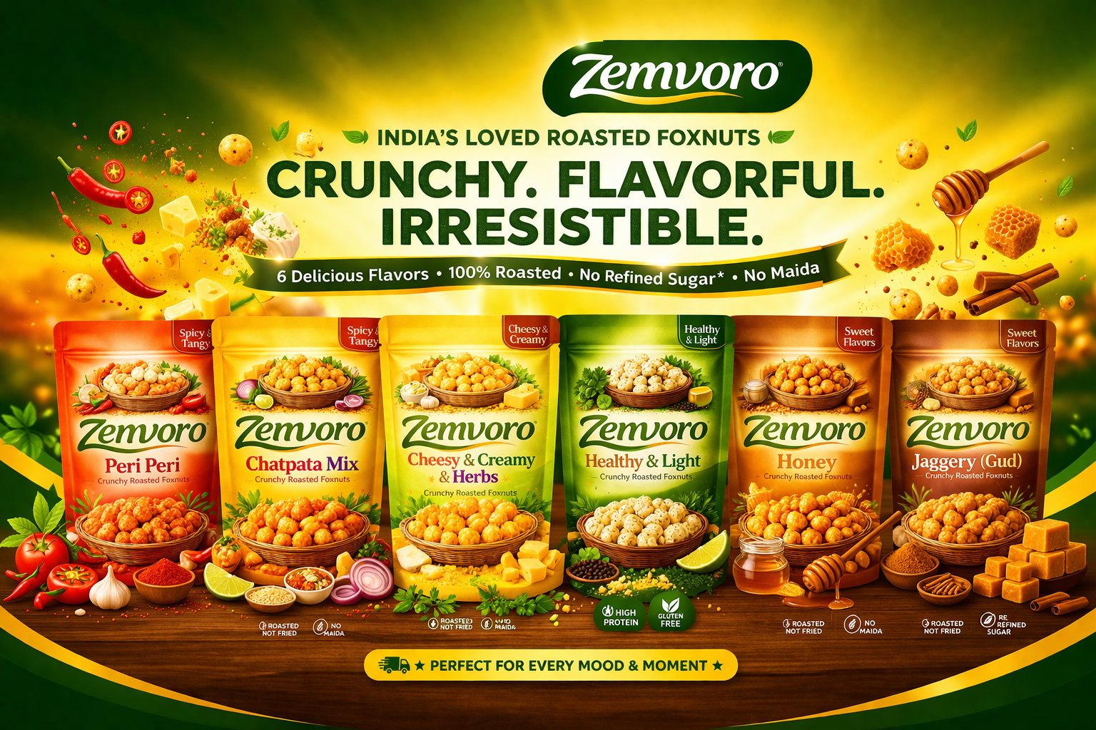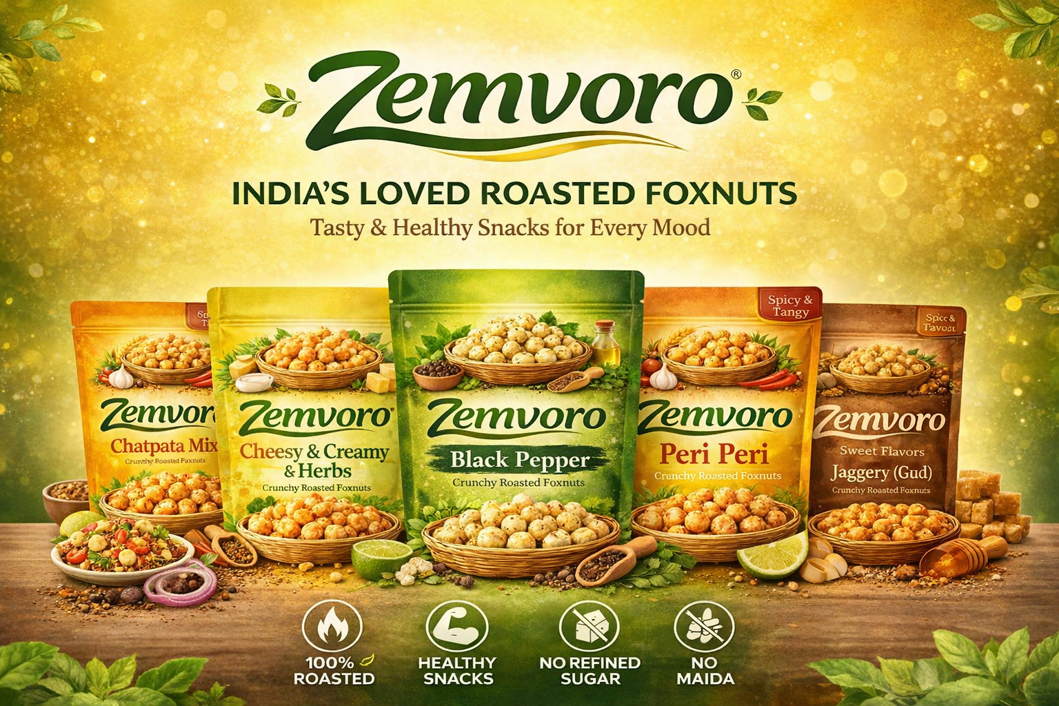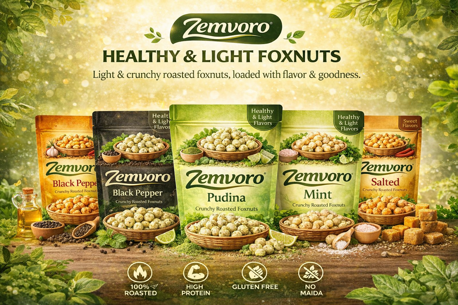 Zemvoro Masala Foxnuts (Makhana) | Spicy Crunchy Roasted Healthy Snack – 80g
