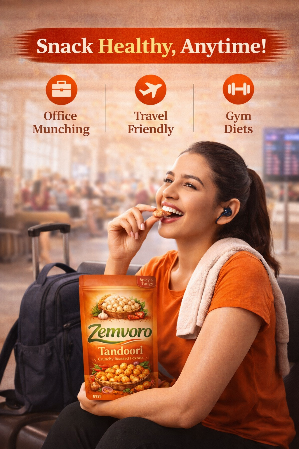 Zemvoro Tandoori Foxnuts (Makhana) | Smoky Spicy Roasted Healthy Snack – 80g
